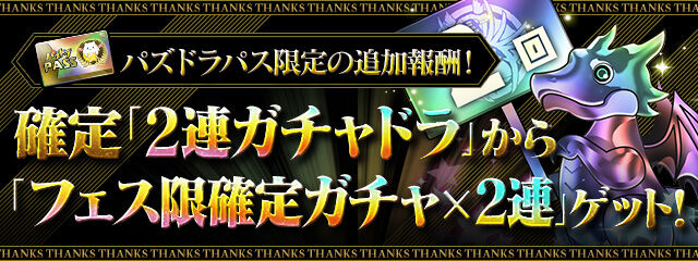 【パズドラ速報】パズパス限定で「2連ガチャドラ」配布!フェス限確定ガチャ×2も【公式】 2023/12/4 オーガch.-パズドラ攻略まとめ速報 " " 続きを読む Source: オーガch.-パズドラ攻略まとめ速報