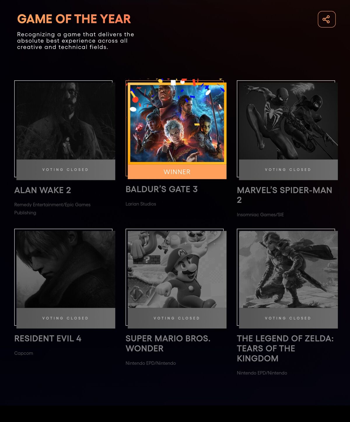 2023年GOTYは『バルダーズゲート3』 ティアキン敗れる 2023/12/8 Y速報 " " 1: 2023/12/08(金) 14:21:40.89 ID:HzrGB+irH 続きを読む Source: Y速報