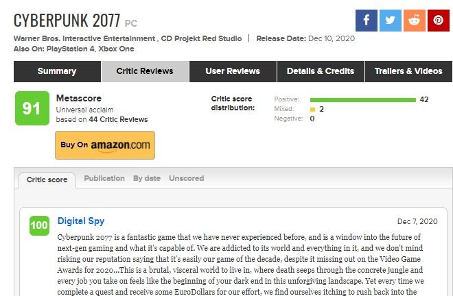 サイバーパンク2077、メタスコア91 2020/12/8 Y速報 " " 1: 2020/12/08(火) 02:18:05.42 ID:aM+EyEalr https://www.metacritic.com/game/pc/cyberpunk-2077/critic-reviews 続きを読む Source: Y速報