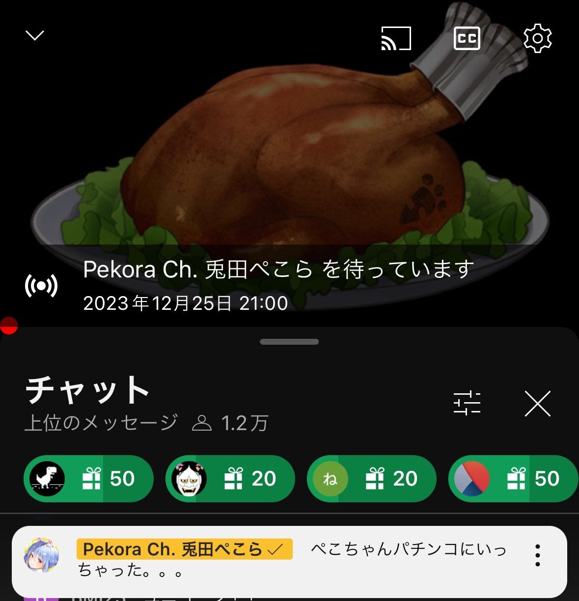 12月25日、兎田ぺこらチャンネルに「チキン冷やし会場」という枠が立つ