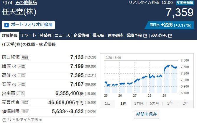 任天堂の株価、とんでもないことになるwwww 2023/12/29 Y速報 " " 1: 2023/12/29(金) 10:17:43.77 ID:OupF0w0h0 https://finance.yahoo.co.jp/quote/7974.T 続きを読む Source: Y速報