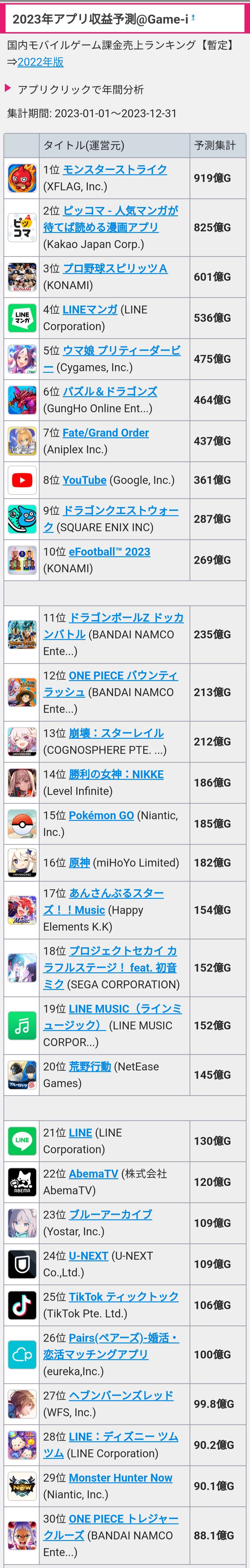 2023年アプリ収益ランキング、発表される 2024/1/2 Y速報 " " 1: 2023/12/31(日) 02:54:23.29 ID:SbO6Eu5rd game-iより 続きを読む Source: Y速報