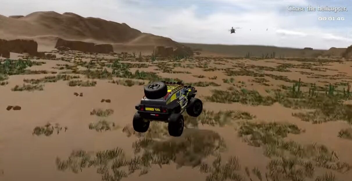 セクシー美女でジープに乗ってヘリを追跡、動機は不明