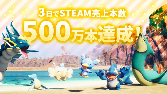 #パルワールド 、リリースから3日で売上本数500万本達成しました!!