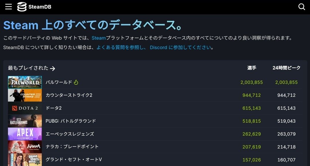 パルワールド、同接200万人突破!!まさかの世界一位がみえてくる・・・ 2024/1/25 Y速報 " " 1: 2024/01/24(水) 22:54:18.80 ID:xkzjcvyj0 https://steamdb.info/ 続きを読む Source: Y速報