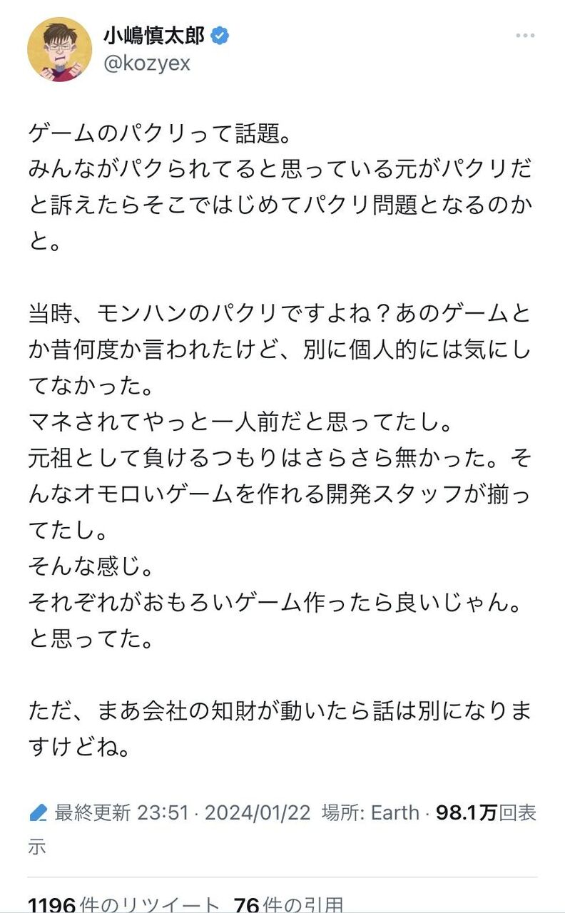ゲーム開発者さん「ゲーム業界はパクりパクられ上等でやってきたんで、何を今更。」