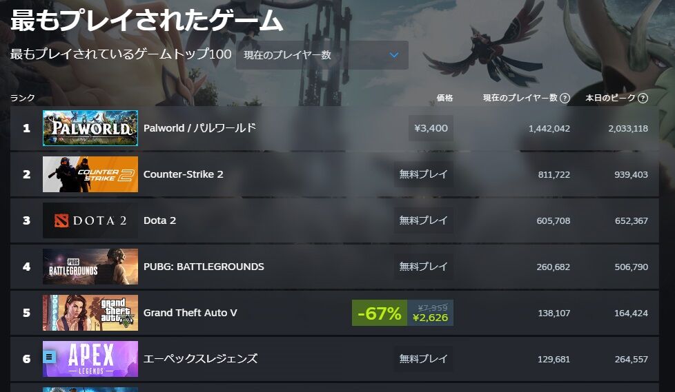 【朗報】パルワールド、また同接200万到達! 2024/1/27 Y速報 " " 1: 2024/01/26(金) 23:21:04.15 ID:0OyX7sQUr https://store.steampowered.com/charts/mostplayed またいったか 凄いな 続きを読む Source: Y速報