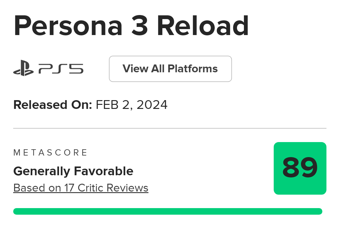 ペルソナ3リロード、メタスコアが公開 2024/1/31 Y速報 " " 1: 2024/01/30(火) 22:21:35.41 ID:GH2wJAuz0 https://opencritic.com/game/16094/persona-3-reload https://www.metacritic.com/game/persona-3-reload/ Metacritic Opencritic 続きを読む Source: Y速報