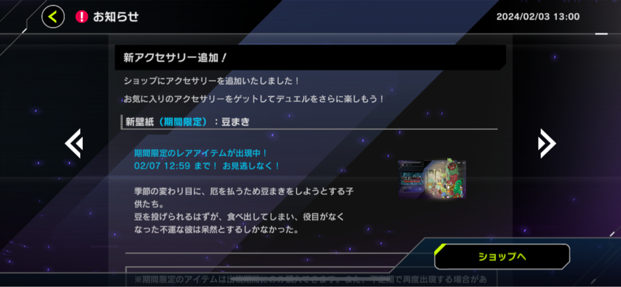 【速報】イベント「デュエリストの絆」開始+「決闘者伝説」記念ログインボーナス+新アクセサリー追加 2024/2/3 遊戯王デュエルリンクス超速報! " " 続きを読む Source: 遊戯王デュエルリンクス超速報!