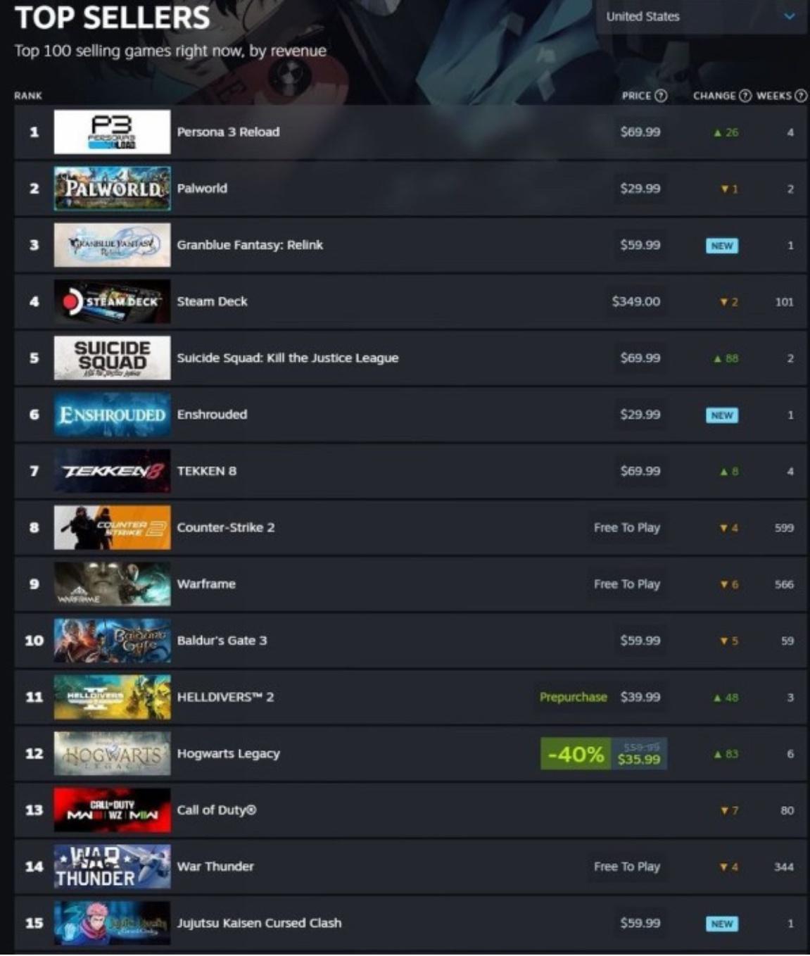 【朗報】和ゲー、完全に復活してしまう! Steamの世界売上でTOP3を独占www 2024/2/6 Y速報 " " 1: 2024/02/05(月) 16:22:02.82 ID:vuB855bjM 世界のSteamセールスランキング 1位、ペルソナ3リロード 2位、パルワールド 3位、グラブルリリンク 7位、鉄拳8 15位、呪術廻戦CursedClash 続きを読む Source: Y速報