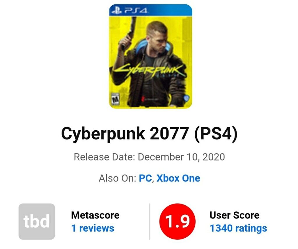 【悲報】サイバーパンク2077、ユーザースコア1. 9点の評価 2020/12/12 Y速報 " " 1: 2020/12/12(土) 10:21:42.26 ID:F/1/UcdWd 続きを読む Source: Y速報