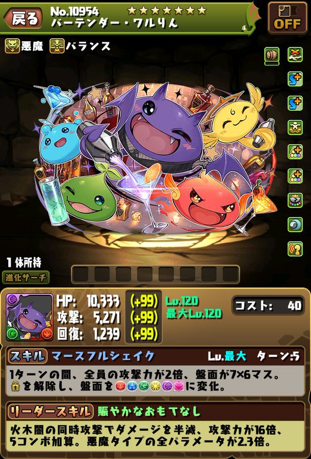 「バーテンダー・ワルりん」です!※本内容は開発中のため、変更する可能性もございます。#パズドラ12周年 pic.twitter.com/VU16O76gv9