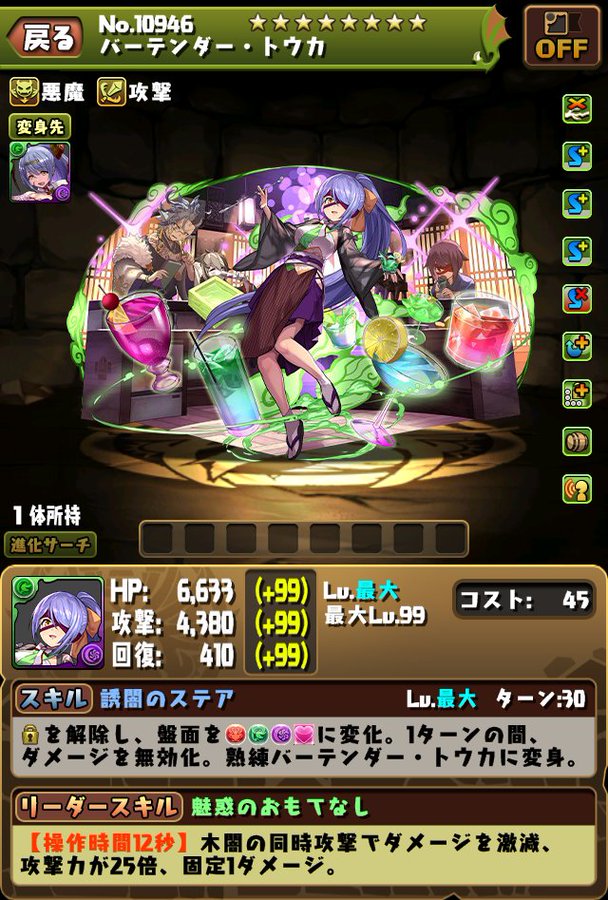 「バーテンダー・トウカ」です!※本内容は開発中のため、変更する可能性もございます。#パズドラ12周年 pic.twitter.com/hctHTrLbik
