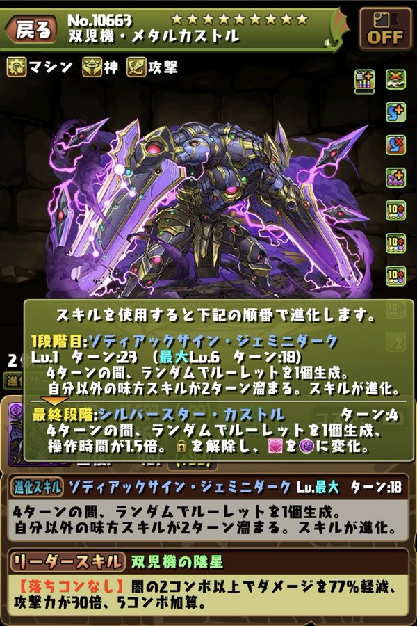 【パズドラ】メタルカストルの性能評価!ウィスキールの販促? 2024/2/28 オーガch.-パズドラ攻略まとめ速報 " " 448: おーがちゃんねる 2024/02/27(火) 18:39:12.53 メタルカストル 本体:回復消すカススキル。ドラゴンも樽もついてないから使い道0 武器:覚醒強めでスキルが強いが、ループスキルなのでアシスト無効ギミックを考えると微妙 続きを読む Source: オーガch.-パズドラ攻略まとめ速報