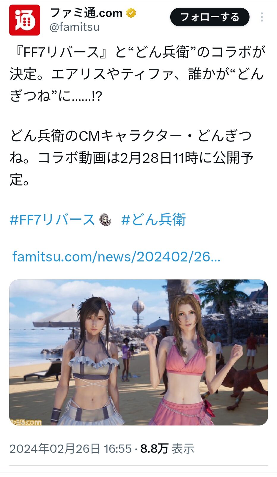 『FF7リバース』と“どん兵衛”のコラボが決定。エアリスやティファ、誰かが“どんぎつね”に……!?