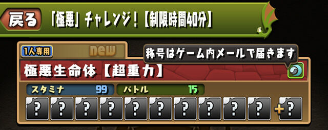 ・「DD・ドラゴン」をリーダーに設定して、「「極悪」チャレンジ!【制限時間40分】」をクリアする