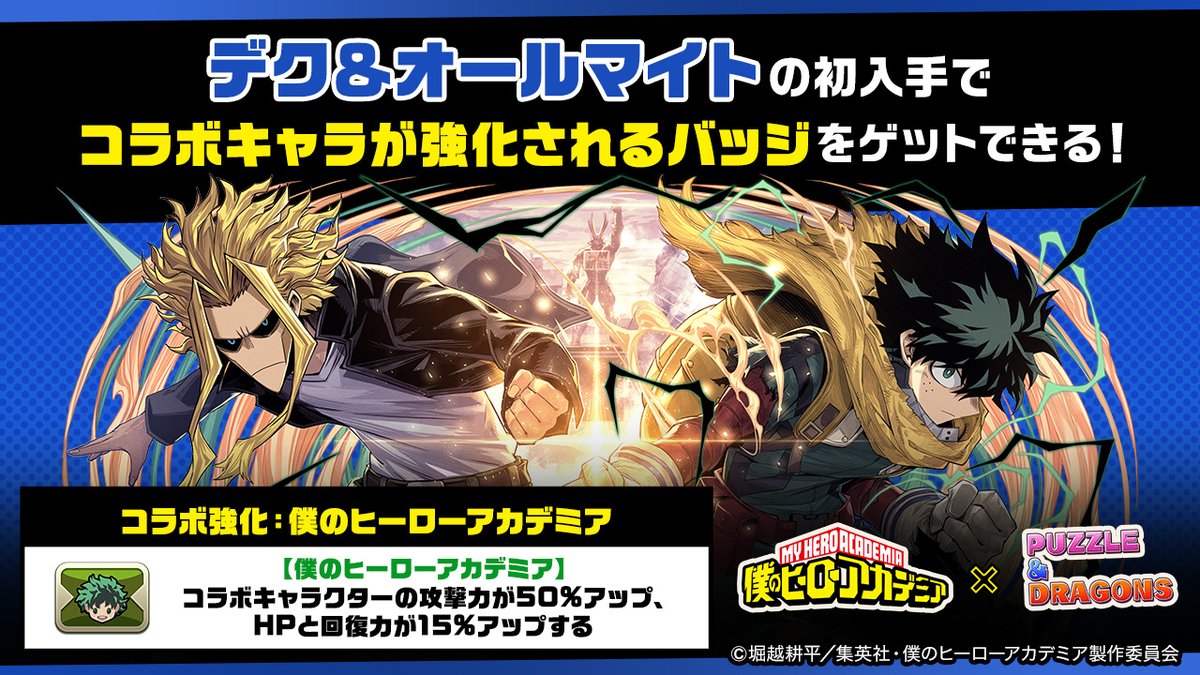 次回アップデートで新実装となるコラボバッジをゲットできます!※本内容は開発中のため、変更する可能性もございます。#ヒロアカ #パズドラ pic.twitter.com/Pnd1VEeTdk