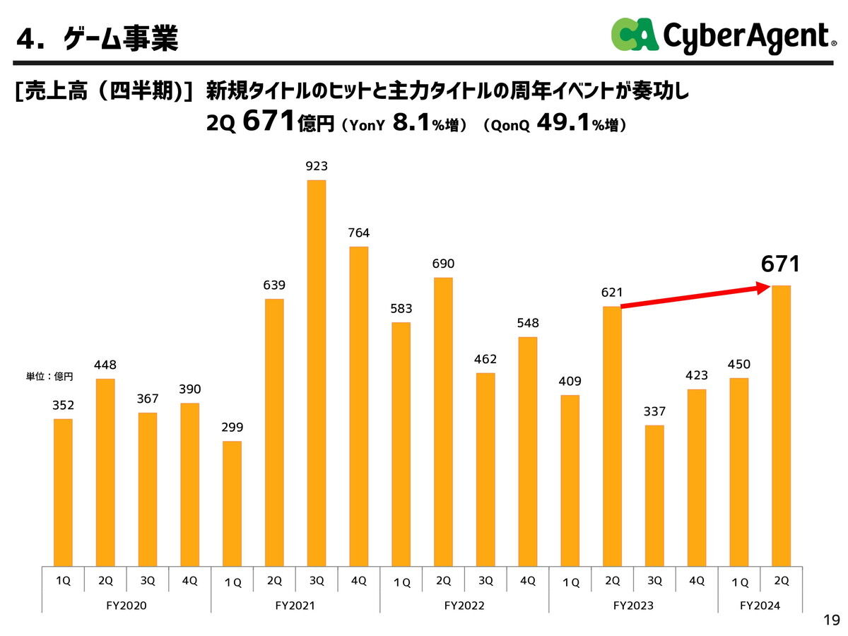 サイバーエージェント、グラブルリリンク等が好調 2024/4/25 Y速報 " " 1: 2024/04/24(水) 16:26:40.88 ID:+z8bjowa0 サイバーエージェント、第2四半期のゲーム事業は営業益19.8%増の182億円…ミリオン達成の『グラブルリリンク』と『ウマ娘』周年が好調 https://gamebiz.jp/news/385139 続きを読む Source: Y速報