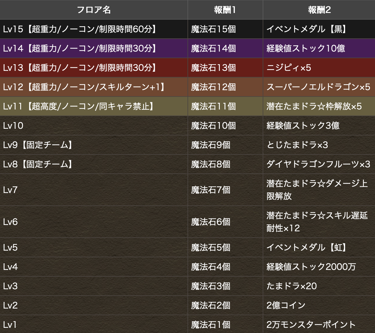 また、今回は全てのフロアが消費スタミナ6で挑戦できるぞ!