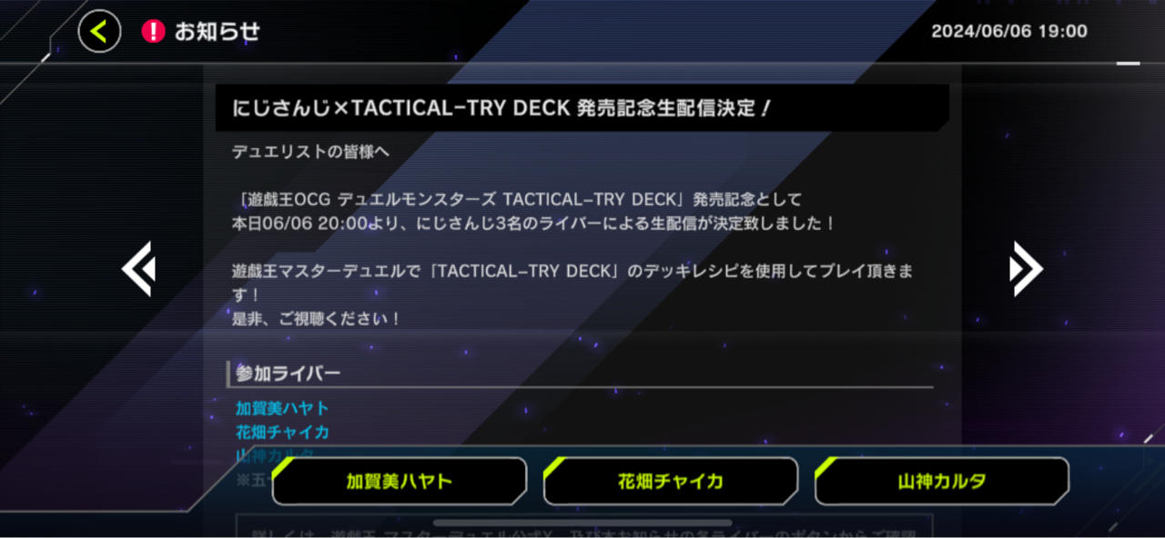 【速報】にじさんじ「TACTICAK-TRY DECK」発売記念生配信決定