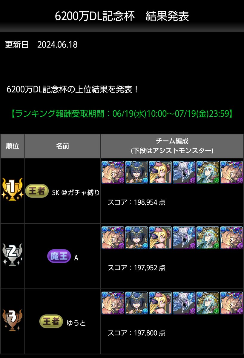 計10回目の入賞なのも嬉しい! pic.twitter.com/wK0N1nGapi— SK @ガチャ縛り (@SK27721296) June 18, 2024