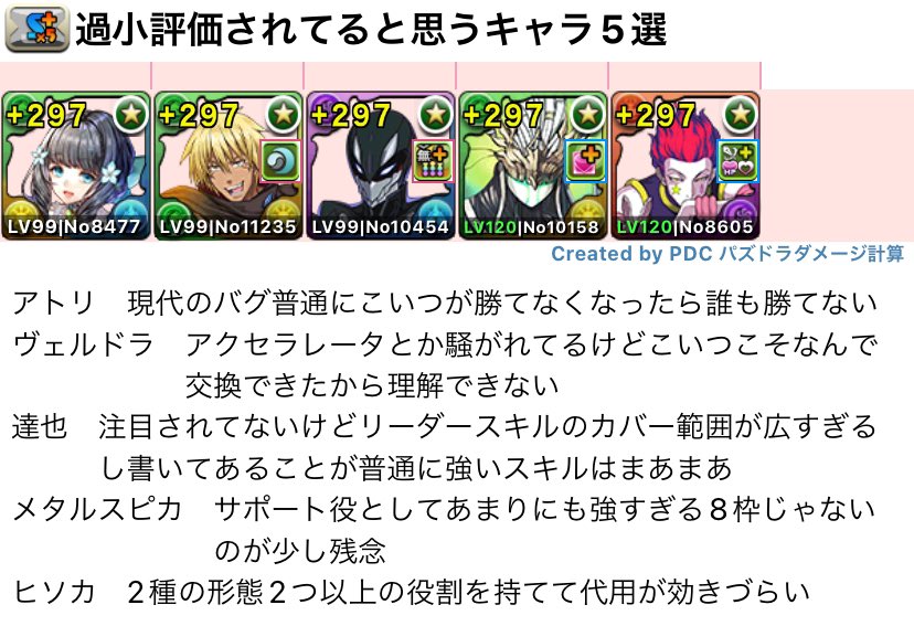 個人的に過小評価のキャラ5体です! pic.twitter.com/bSEgtrwuFC