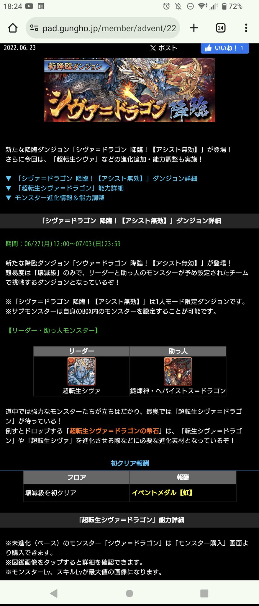 本日でシヴァドラ実装と降臨2年目…