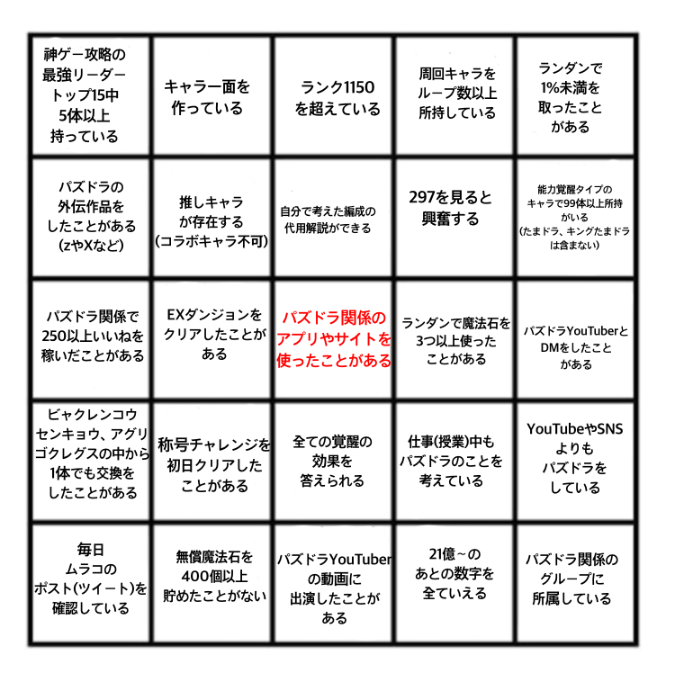 パズドラガチ勢ビンゴを作りました!(改訂版)