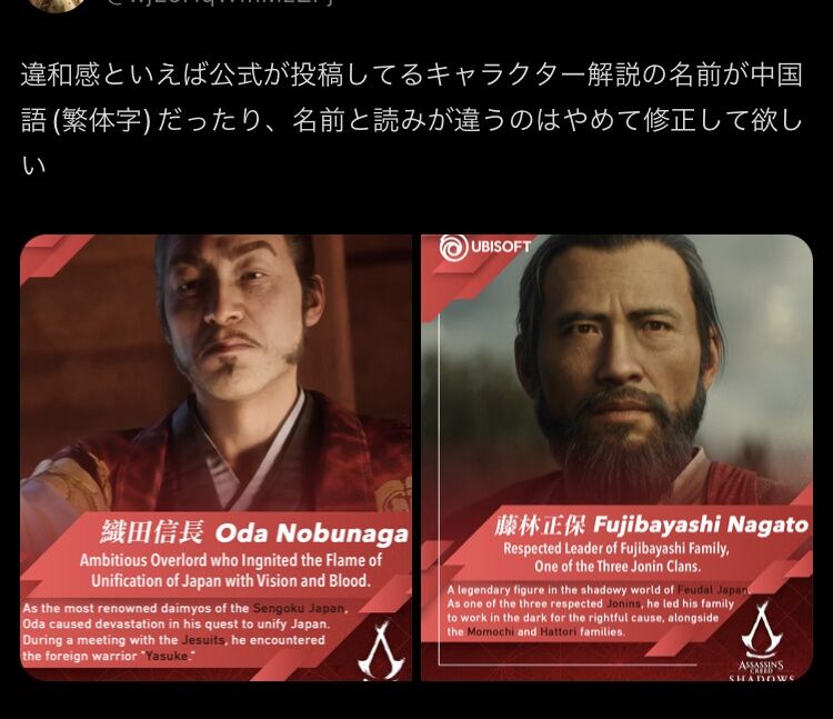 アサクリシャドウズさん、今度は公式サイトで人名の読み方と漢字を間違えてしまう 2024/7/4 Y速報 " " 1: 2024/07/03(水) 12:30:01.38 ID:BSejcquv0 続きを読む Source: Y速報