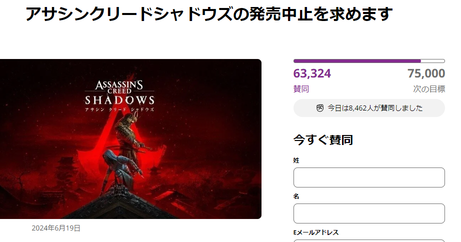 アサクリ発売中止署名、6万人突破www 2024/7/7 Y速報 " " 1: 2024/07/06(土) 14:18:50.43 ID:+XyAKCJTM まだまだ増えてるもよう https://www.change.org/p/%E3%82%A2%E3%82%B5%E3%82%B7%E3%83%B3%E3%82%AF%E3%83%AA%E3%83%BC%E3%83%89%E3%82%B7%E3%83%A3%E3%83%89%E3%82%A6%E3%82%BA%E3%81%AE%E7%99%BA%E5%A3%B2%E4%B8%AD%E6%AD%A2%E3%82%92%E6%B1%82%E3%82%81%E3%81%BE%E3%81%99 続きを読む Source: Y速報