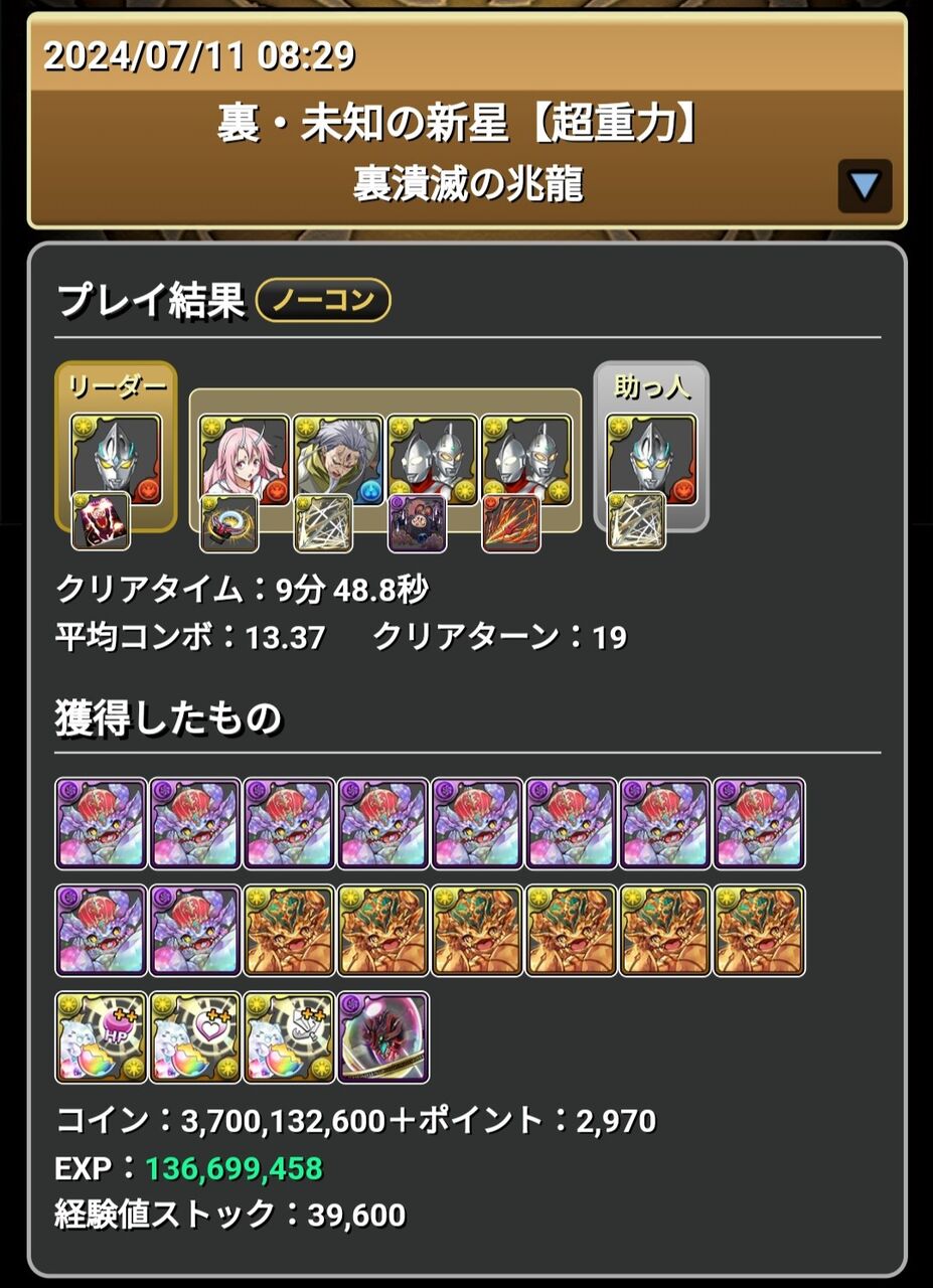 【パズドラ】裏凶兆で相性抜群!ウルトラマンセブン編成キタ━(゚∀゚)━!! 2024/7/11 オーガch.-パズドラ攻略まとめ速報 " " 65: おーがちゃんねる 2024/07/11(木) 08:36:51.13 ずらしとT字数回で6F以外全部駆け抜けられるから結構いいな 美琴も死柄木もおりゃんから裏凶兆はこいつらに任せよう 続きを読む Source: オーガch.-パズドラ攻略まとめ速報