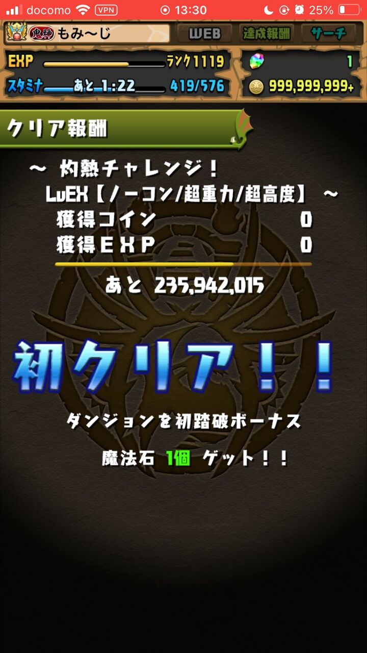 灼熱チャレンジLvEX ブレーザー彦星でクリア!