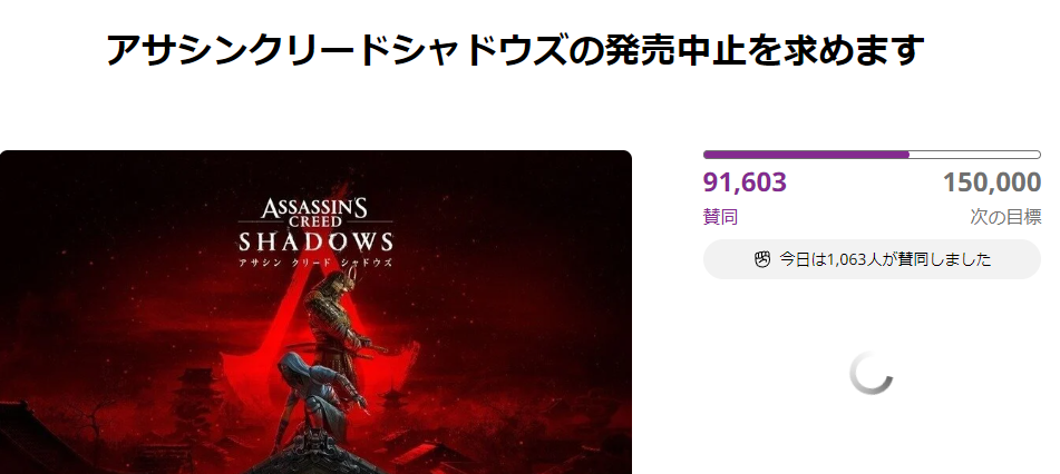 アサクリシャドウズ発売中止署名、9万人突破! 2024/7/20 Y速報 " " 1: 2024/07/18(木) 20:08:16.54 ID:REroibsP0 9万人突破です https://www.change.org/p/%E3%82%A2%E3%82%B5%E3%82%B7%E3%83%B3%E3%82%AF%E3%83%AA%E3%83%BC%E3%83%89%E3%82%B7%E3%83%A3%E3%83%89%E3%82%A6%E3%82%BA%E3%81%AE%E7%99%BA%E5%A3%B2%E4%B8%AD%E6%AD%A2%E3%82%92%E6%B1%82%E3%82%81%E3%81%BE%E3%81%99 続きを読む Source: Y速報