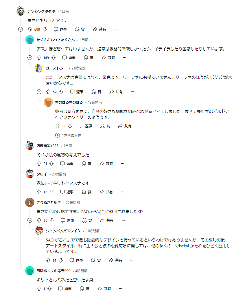 外国人「異世界転生アニメ多すぎ。あとなんでキリトやアスナみたいな黒髪少年と金髪ロングヘアー少女の組み合わせ多いのか?SAOパクリやろ!」