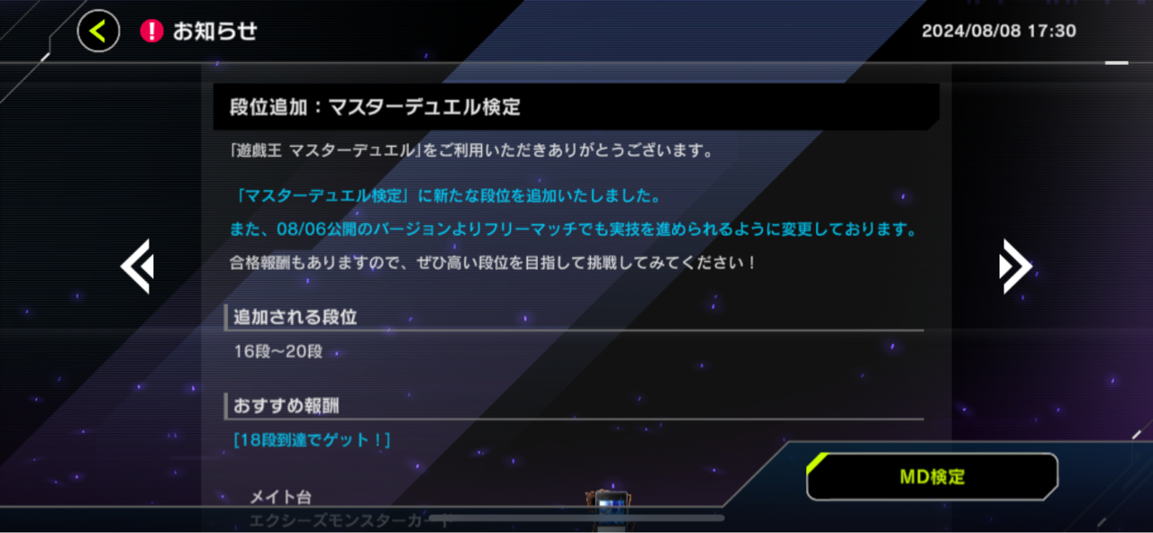【速報】マスターデュエル検定段位+新アクセサリー追加