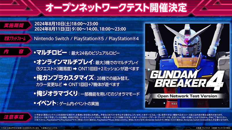 Playstation.Blogから『ガンダムブレイカー4』特集記事に加え、第2回オープンネットワークテストのアナウンスがありました。