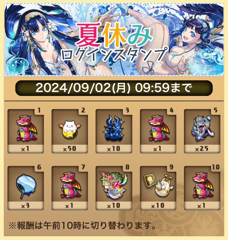 【パズドラ速報】夏休みガチャ×1配布開始キタ━(゚∀゚)━!!【ログインスタンプ4日目】 2024/8/22 オーガch.-パズドラ攻略まとめ速報 " " 夏休みイベント ログインスタンプ実施! 期間: 08/19(月)10:00~09/02(月)09:59 期間限定の特別なログインスタンプを実施! 「夏休みガチャ」など、期間中のログイン日数に応じた報酬がゲーム内メールに届くぞ! 続きを読む Source: オーガch.-パズドラ攻略まとめ速報