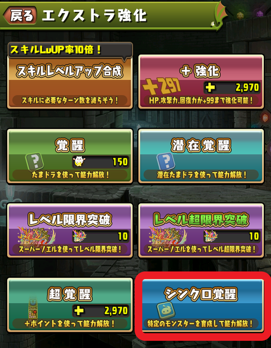エクストラ強化とモンスター強化画面に「シンクロ覚醒」の項目が追加されます!