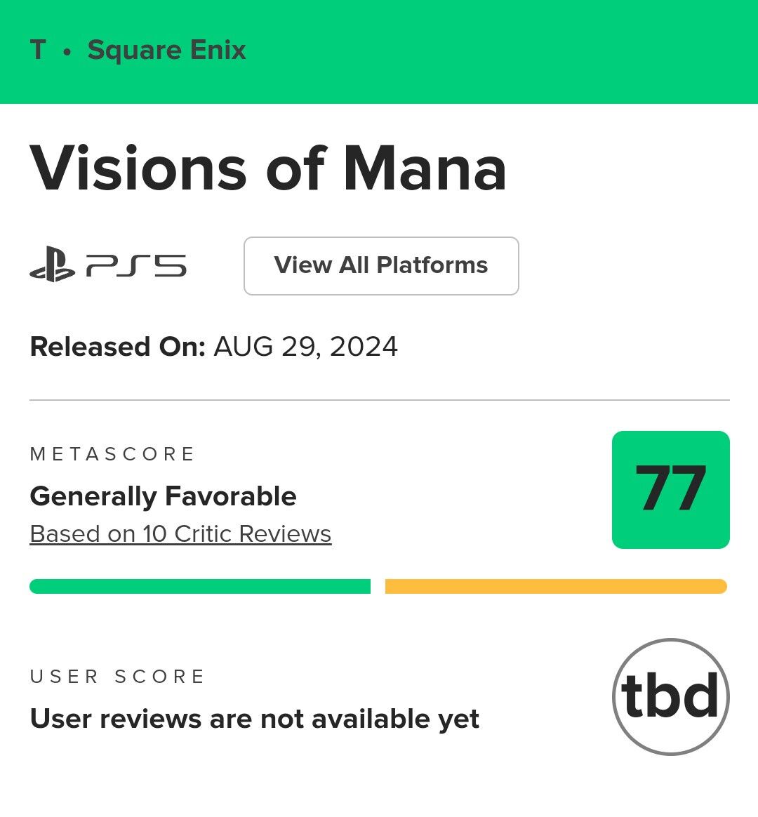 聖剣伝説 VISIONS of MANA、メタスコア77 2024/8/28 Y速報 " " 1: 2024/08/27(火) 21:22:42.84 ID:x3ROJfku0 現時点での数字です https://www.metacritic.com/game/visions-of-mana/ 続きを読む Source: Y速報