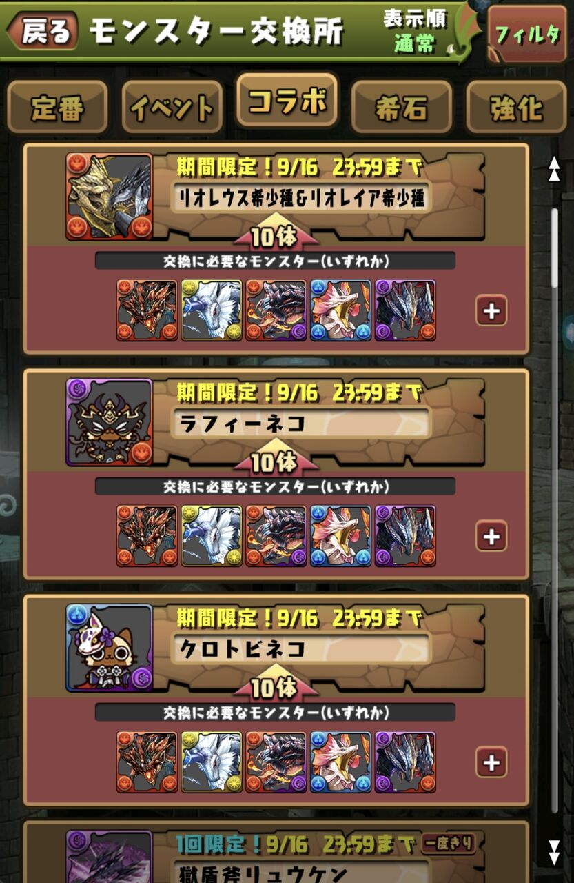 【パズドラ速報】「ネロミェール」「ラフィーネコ」などの交換条件判明キタ━(゚∀゚)━!!【公式】 2024/8/31 オーガch.-パズドラ攻略まとめ速報 " " 10体交換:リオレウスリオレイア希少種、ラフィーネコ、クロトビネコ 5体交換:ネロミェール、アマツ、ディアブロス、ジンオウガ、ネルギガンテ、ミラボレアス、ヤマツカミ、アカムトルム、イヴェルカーナ、アルバトリオン 続きを読む Source: オーガch.-パズドラ攻略まとめ速報