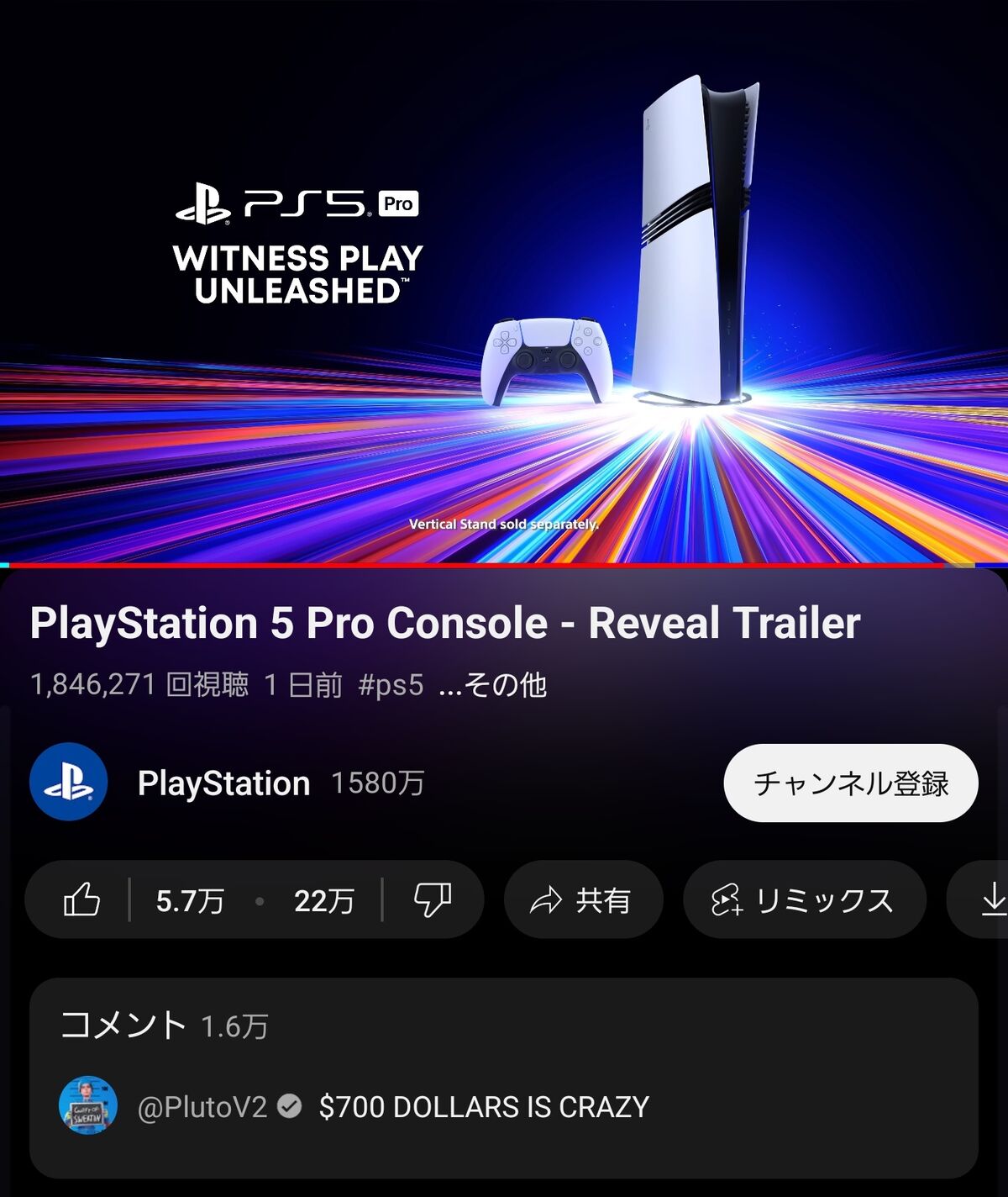 【悲報】PS5 Pro公式トレーラー、低評価が増えてしまう 2024/9/12 Y速報 " " 1: 2024/09/12(木) 08:29:48.70 ID:+ma0aG2y0 続きを読む Source: Y速報