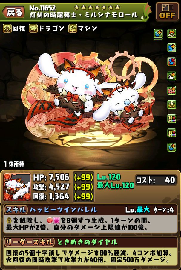 「灯刻の時龍契士・ミルシナモロール」です!※本内容は開発中のため、変更する可能性もございます。#サンリオキャラクターズ #パズドラ pic.twitter.com/VBUViaqx0Q