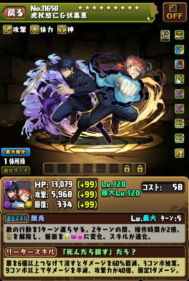 「2級呪術師・伏黒恵」からの転生進化となっています!※本内容は開発中のため、変更する可能性もございます。#呪術廻戦 #パズドラ pic.twitter.com/x4PxUEXvY7