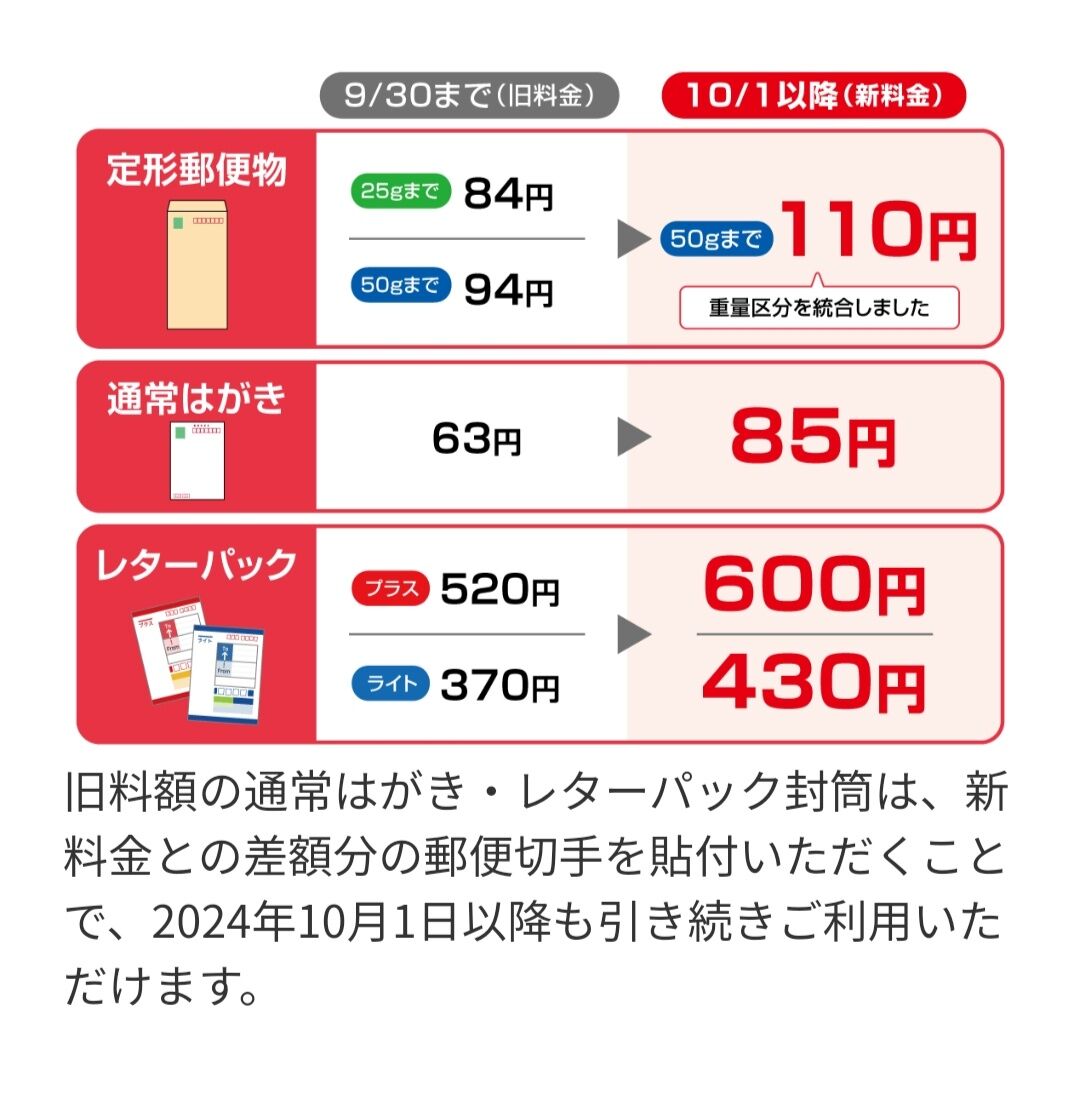 定形郵便、本日から3割値上げwwwwww