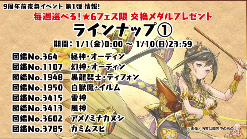 期間中にパズドラにログインすると、「モンスター交換所」で★6フェス限定モンスターいずれか1体と交換することができる「★6フェス限交換メダル」が手に入るぞ!