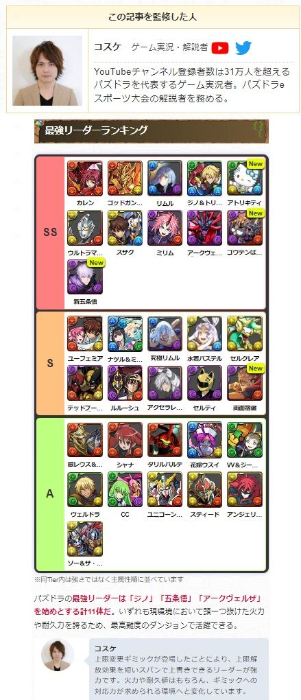 【パズドラ】コスケ監修の最強リーダーランキング公開キタ━(゚∀゚)━!! 2024/10/7 オーガch.-パズドラ攻略まとめ速報 " " 519: おーがちゃんねる 2024/10/06(日) 12:44:32.79 コスケ監修の最強リーダーランキング出たな 続きを読む Source: オーガch.-パズドラ攻略まとめ速報