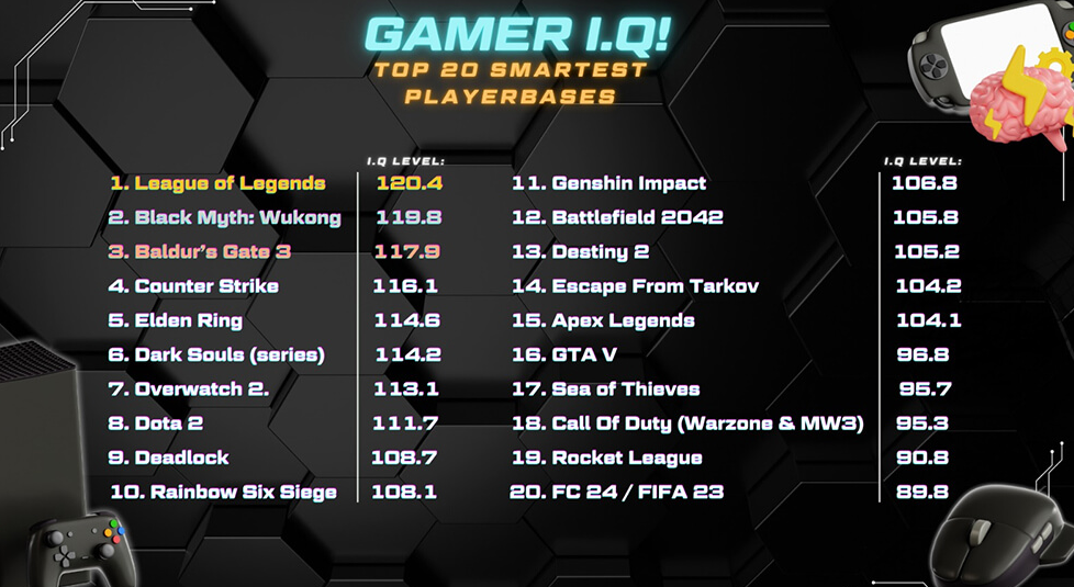 Which Gamers Are the Smartest? IQ Rankings by Game & Console