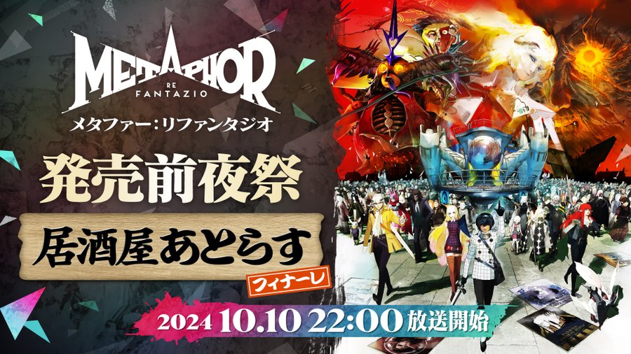 本日10/10 22時00分~ 発売前夜祭「居酒屋あとらす・フィナーレ」放送予定とのことですので、