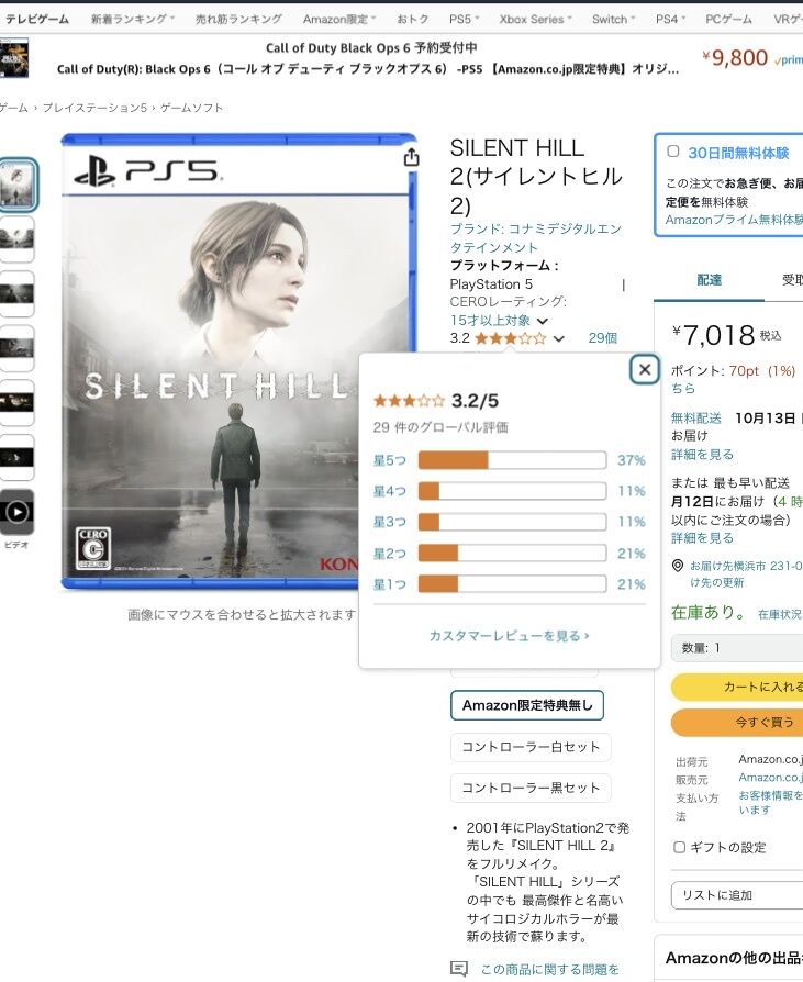 【悲報】PS5「サイレントヒル2」、アマレビュ⭐︎3.2の評価 2024/10/12 Y速報 " " 1: 2024/10/11(金) 19:37:07.84 ID:8y2pgOAA0 SILENT HILL 2(サイレントヒル2) コナミデジタルエンタテインメント 2024-10-08 続きを読む Source: Y速報
