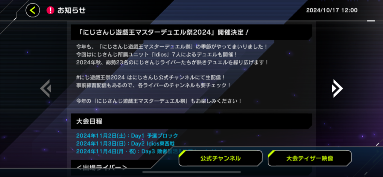 【速報】「にじさんじ遊戯王マスターデュエル祭り2024」開催決定